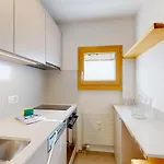 Geniet van een ingerichte kitchenette in Abitaziun Chamuotsch 2 - Celerina Appartement met een waterkoker, een koelkast en een oven voor uw gemak. Punt Schlattain bushalte is op 200 meter van Abitaziun Chamuotsch 2 - Celerina Appartement verwijderd.